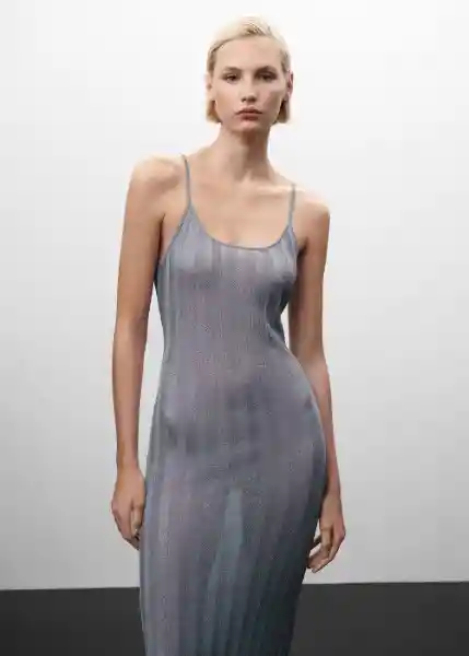 Cuello Escotado Diseño Entallado Diseño Largo Diseño Plisado Espalda Abierta Sin Cierre Sin Mangas Tejido de Lúrex Tejido de Punto Fino Tirantes Finos - 57059118_Pl.