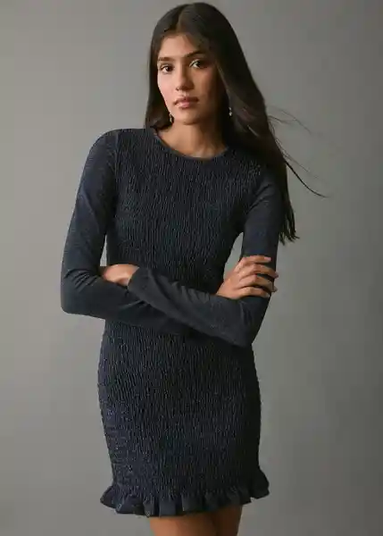 Cuello Redondo Cuerpo Del Vestido Panel Nido de Abeja Diseño Recto Manga Larga Tejido de Lúrex Tejido Efecto Brillo Tejido Elástico Volante en el Bajo - 17027784_56.