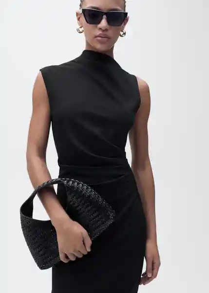 Cintura Drapeada Cuello Asimétrico Diseño Entallado Diseño Midi Sin Cierre Sin Mangas - 87055764_99.