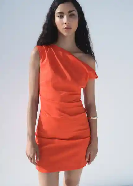 Cierre de Cremallera Lateral Cuello Asimétrico Diseño Corto Diseño Entallado Fruncidos Laterales Sin Mangas Tejido de Algodón - 17083329_87.