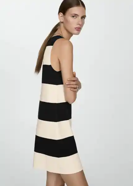 Cuello Redondo, Diseño Corto, Diseño Evasé, Estampado de Rayas, Sin Mangas, Tejido de Punto Fino - 77064061_05.