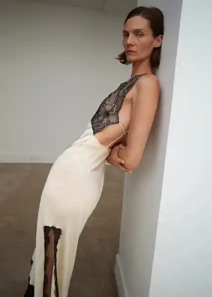 Abertura Latera en el Bajo Colección Selection Detalles Encaje Diseño Midi Diseño Recto Escote de Pico Espalda Abierta Con Tira Estilo Lencero Sin Cierre Sin Mangas Tejido Satinado Tirantes Finos - 17046359_05.