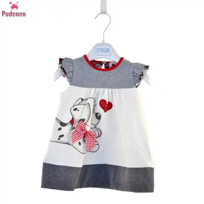 Vestido blanco y gris con dibujo de perrito, talla 9 meses