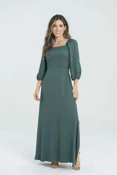 En Chalis Escote Recto Manga 3/4 Con Elástico en Hombro y Puño Cortés Delanteros Decorativos Cierre Lateral Tono a Tono Falda Larga Abertura Lateral.