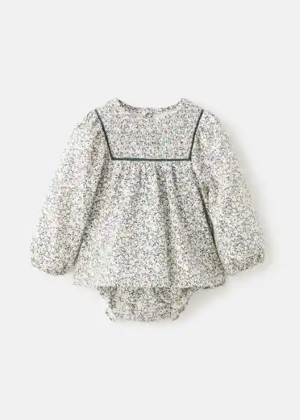 Cuello Redondo Detalle Fruncido Diseño Evasé Diseño Floral Manga Larga Ranita Algodón Estampada Tejido 100% Algodón - 17096352_02..