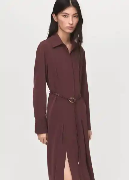 Abertura Latera en el Bajo Cierre Delantero de Botones Oculto Cinturón Ajustable Cuello Camisero Detalle de Pinzas Diseño Evasé Diseño Midi Manga Larga Con Puños Abotonados - 17015829_78.