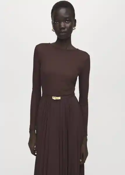 Cinturón Con Cierre Metálico Cuello Caja Diseño Combinado Diseño Evasé Diseño Midi Exclusivo Online Falda Plisada Manga Larga Sin Cierre Trabillas - 27041334_32.