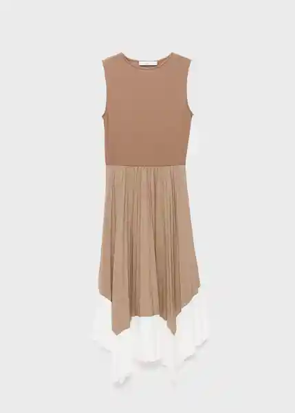 Bajo Asimétrico Cuello Redondo Diseño Bicolor Diseño Combinado Diseño Midi Falda Plisada Sin Cierre Sin Mangas Tirantes Anchos - 17002546_01.