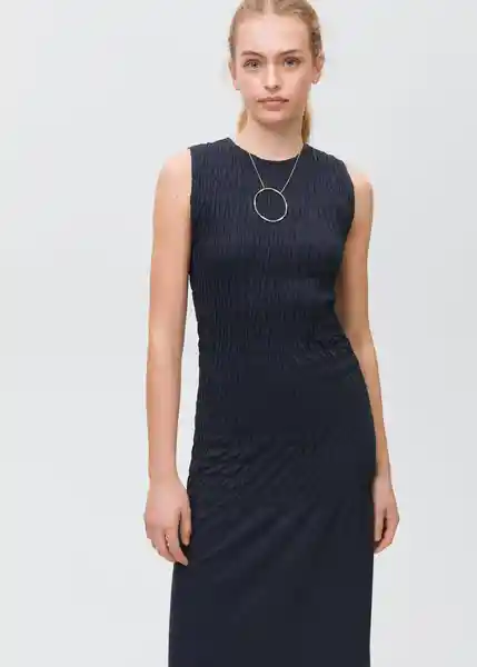 100% Algodón Cierre de Botón en la Parte Posterior Cuello Redondo Diseño Evasé Diseño Midi Diseño Recto Panel Nido de Abeja Sin Mangas - 87076336_56.