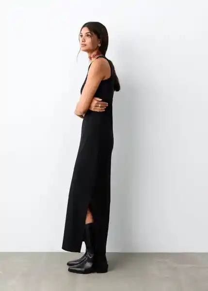 Cuello Redondo Detalle de Abertura Lateral en el Bajo Diseño Largo Tejido de Algodón Tirantes - 27044776_99.