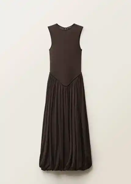 Bajo Abullonado Colección Selection Corte en Pico en la Cintura Cuerpo Entallado Diseño Combinado Diseño Largo Sin Cierre Tejido Mezcla de Algodón - 87067904_32.