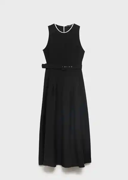 Cierre de Botón en la Parte Posterior Cierre de Cremallera Lateral Cinturón Con Cierre de Hebilla Cuello Redondo Diseño Evasé Diseño Midi Panel de Pinzas en la Cintura Ribetes en Contraste Sin Mangas Trabillas - 87005735_99.