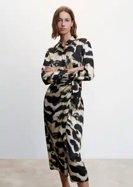 Abertura Lateral Cierre Delantero Con Botones Colección Fiesta y Ceremonia Cuello Camisero Diseño Midi Disponible Plus Estampado Abstracto Manga Larga Nudo Decorativo Tejido Satinado - 47015880_99.