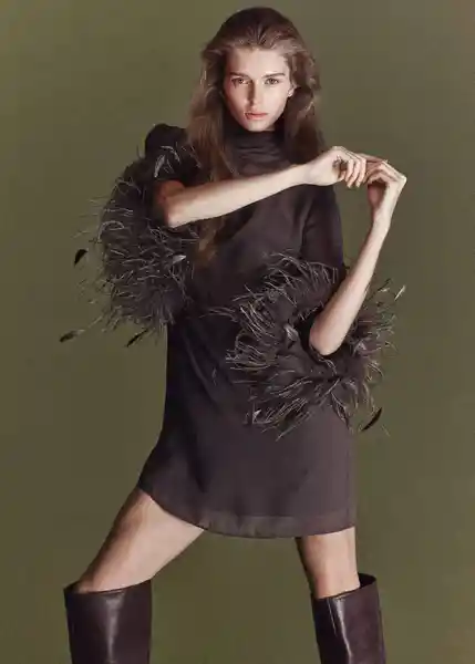 Adorno de Plumas en Las Mangas Cierre Trasero Cuello Perkins Detalle de Lazo en el Cuello Diseño Corto Diseño Evasé Esta Prenda Pertenece a Nuestra Colección de Fiesta y Evento Diseñada Para Elevar Tus Looks en Ocasiones Especiales Este Vestido Imprime Una Estética Retro-Chic Que Rememora la Sofisticación de Los Años 70 Pero Con un Toque Modernizado. Las Mangas Acampanadas Adornadas Con Plumas Añaden un Elemento Teatral Que Convierte Esta Prenda en el Centro de Atención Ideal Para Ocasiones Especiales Los Artículos de la Colección Capsule se Pueden Cambiar o Devolver en un Plazo de 14 Días Desde la Fecha de Envío Manga Larga Acampanada - 27051293_35.