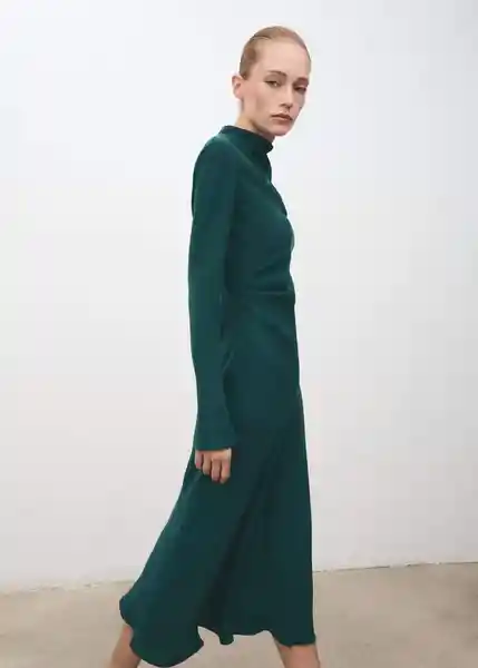 Cierre de Cremallera en la Parte Posterior Cuello Drapeado Diseño Evasé Diseño Midi Disponible Plus Forro Interior Fruncido Lateral Manga Larga - 17047808_43.