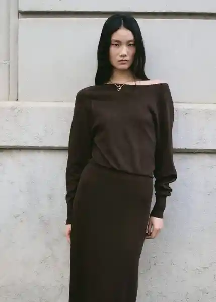 Cintura Con Fruncido Elástico Cuello Barco Diseño Evasé Diseño Midi Manga Larga Sin Cierre Tejido de Punto Fino - 27074083_32.