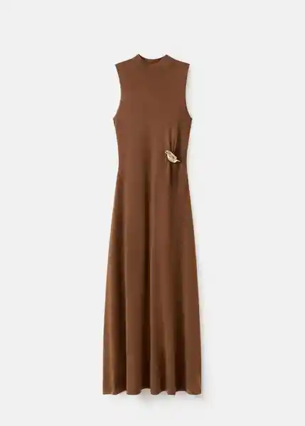 Cuello Perkins Detalle Drapeado en la Cintura Detalle Metálico Diseño Evasé Diseño Midi el Color Marrón es Exclusivo Online Sin Cierre Sin Mangas Tejido de Punto Fino - 27051266_17.