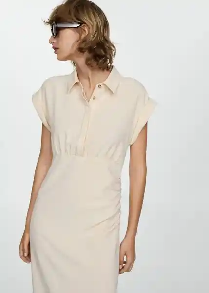 Cierre Delantero de Botones Oculto, Cuello Camisero, Detalles Drapeados, Diseño Entallado, Diseño Midi, Manga Corta Con Vuelta, Tejido Fluido - 77024033_05.