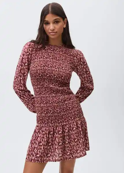 Cuello Redondo Con Cierre de Botón Cuerpo Del Vestido Panel Nido de Abeja Diseño Estampado Diseño Evasé Manga Larga Con Puños Elásticos Tejido de Viscosa Tejido Fluido Volante en el Bajo - 17045792_76.