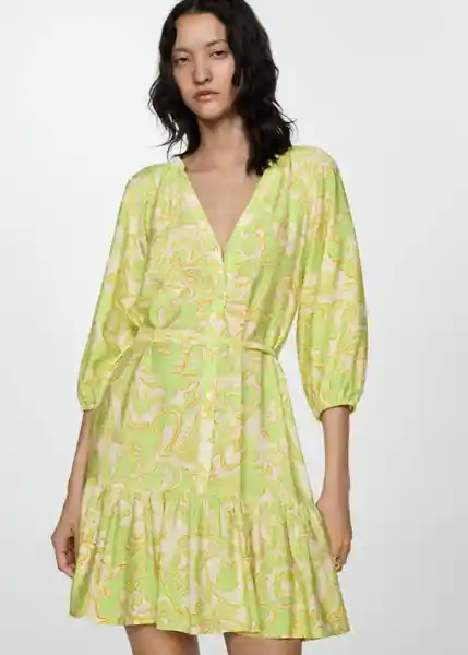 Cierre de Lazo, Cierre Delantero Con Botones, Detalle de Volante, Diseño Corto, Diseño Estampado, Diseño Evasé, Disponible Plus, Escote de Pico, la Modelo Mide 179 cm y Lleva Una S, Manga Tres Cuartos Con Puños Elásticos, Tejido Fluido - 77060344_14.