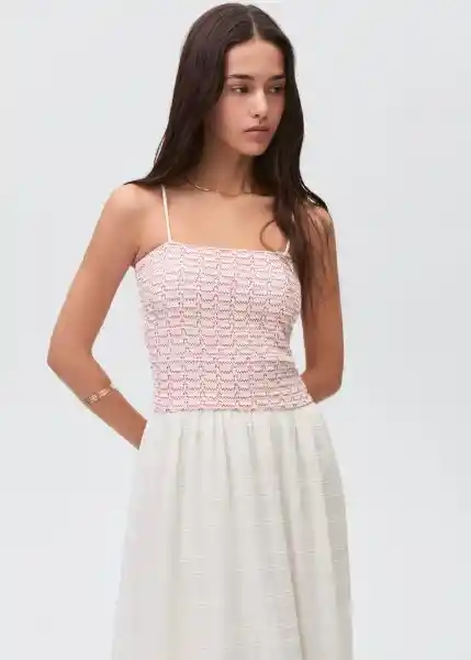 Bajo Con Volante Diseño Acampanado Diseño Largo Escote Recto Forro Interior Panel Bordado Panel Nido de Abeja Tejido 100% Algodón Tejido Con Textura Tirantes Finos - 87086338_02.