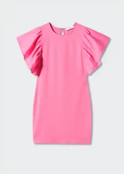 Abertura en la Espalda Con Cierre de Botón Cuello Redondo Diseño Corto Diseño Entallado Manga Corta Acampanada Tejido Mezcla de Algodón - 47078634_88.