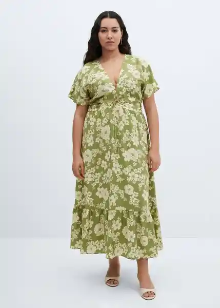 Abertura en la Parte Delantera Bajo Con Vuelo Cierre de Botón en el Cuello Cierre de Botón en la Parte Posterior Diseño Estampado Diseño Evasé Diseño Largo Escote Con Cierre de Lazo Escote de Pico Goma Elástica en la Parte Posterior Manga Corta Tejido Fluido - 67017123_43.