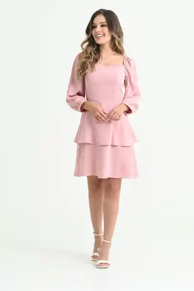 En Tejido Plano Fondo Entero Escote Cuadrado Sesgado Elástico en Hombro Manga Corta Corte en Cintura Cierre Lateral Doble Falda Silueta Semi Ajustada.