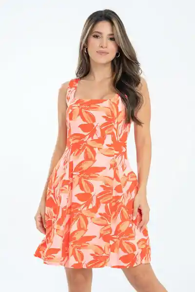 Corto en Tejido Plano Estampado Escote Cuadrado Tanto en Delantero Como en Trasero Tiras Gruesas Enresortado en Nido de Abeja en Centro Espalda Bolsillos en Los Laterales de la Falda Tiene Cortes Que Abren en Nesgas Ruedo de 0.8 mm Ajustado.