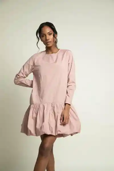 Vestido Corto Manga Larga Rosa Talla M