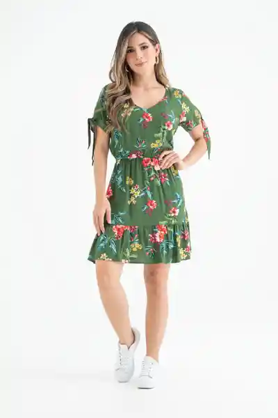 En Tejido Plano Estampado Escote en V Con Falso Manga Corta Con Puño Que Termina en Tiras Que Anudan Elástico en Cintura Bolsillos Laterales Bolero en Ruedo Silueta Semi Ajustada.
