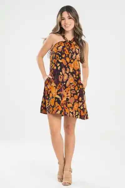 Corto en Tejido Plano Estampado Detalle de Anudado Con Escote Tipo Halter en la Parte Delantera y Termina en Tiras Dobles en la Espalda Elástico de 1 cm en Espalda Bolsillos en Los Laterales Silueta Semi Ajustada.