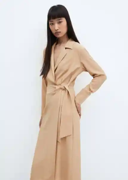 Cierre de Nudo Cuello Pico Con Solapa Diseño Cruzado Diseño Midi Estilo Camisero Manga Larga Solapas Con Muesca Tejido Fluido - 57079088_08.