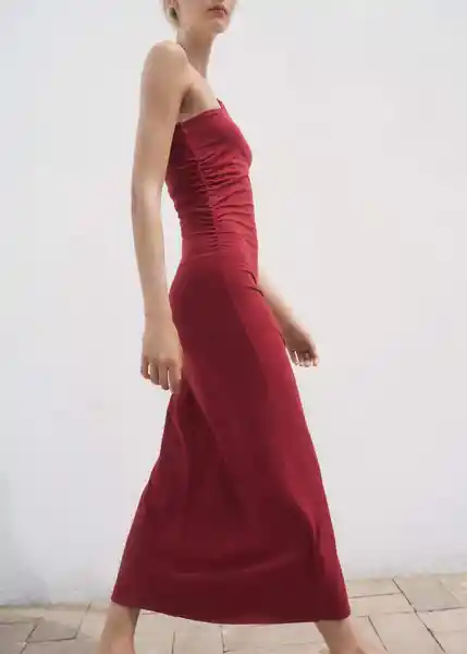 Diseño Entallado Diseño Largo Escote Asimétrico Fruncido Lateral Sin Cierre Sin Mangas Tejido de Algodón Tirante Fruncido - 17012911_78.