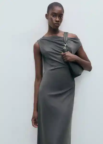 Cuello Asimétrico Diseño Entallado Diseño Largo Fruncido Lateral Mangas Asimétricas Sin Cierre - 17074108_95.