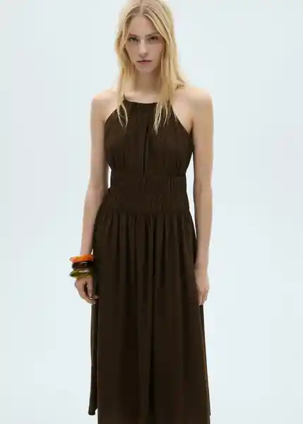 Cierre de Cremallera en la Parte Posterior Cuello Halter Detalle Fruncido en la Cintura Diseño Evasé Diseño Midi Forro Interior Sin Mangas Tirantes Finos - 87004788_30.