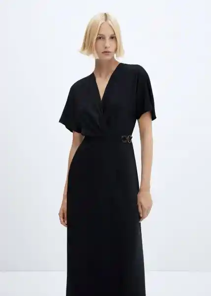 Cierre de Lazo Lateral Detalle de Aros Diseño Cruzado Diseño Evasé Diseño Largo Disponible Plus Escote de Pico Cruzado Looks de Oficina Manga Corta Tejido Fluido - 57084769_99.