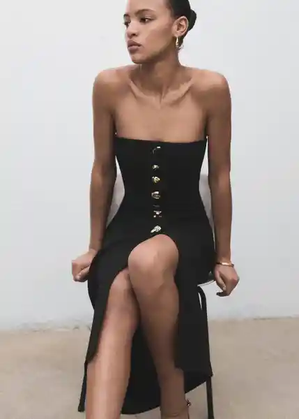Abertura Frontal en el Bajo Botones Efecto Joya Cierre Delantero Con Botones Diseño Entallado Diseño Midi Palabra de Honor Sin Mangas Tejido de Punto Fino - 17054139_99.