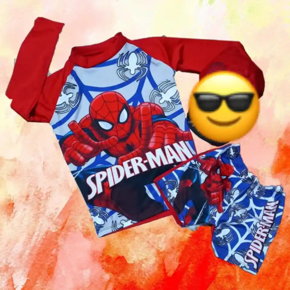 Vestido de baño talla 14 DOS PIEZAS CON ESTAMPADO DE TU HEROE FAVORITO SPIDER MAN CAMISA MANGA LARGA CON ESTAMPADO DE SPIDER MAN EN TELA LICRADA SHORT CON ESTAMPADO DE SPIDER MAN EN TELA LICRADA TALLA : 14 para niños 12- 13 AÑOS