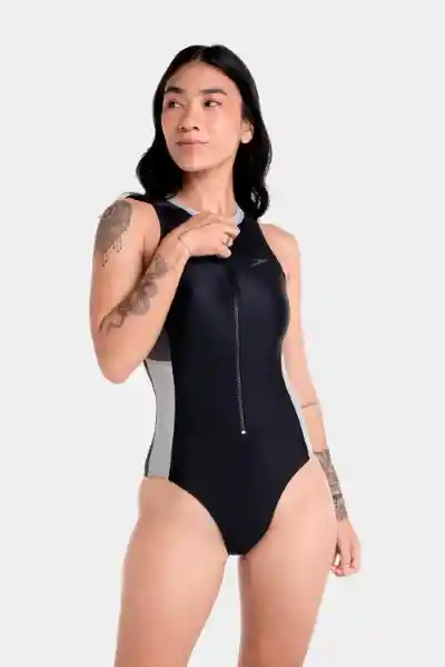 En Speedo Dentro de Nuestra Línea de Vestidos de Baño Para Mujer te Ofrecemos el Vestido de Baño Hydrasuit Anthracite Mujer. Este Vestido de Baño Negro Cuenta Con Diseño de Franjas Laterales en Tonos Grises y Cuello Redondo Gris. Un Vestido de Baño de Una Pieza de la Línea Vanquisher Con el Icónico Estampado Boomerang Speedo en Gris Tornasol Que Refleja Velocidad y Determinación. Con Forro Interno Delantero y Cierre Frontal Para Mayor Comodidad al Poner y Quitar. Un Vestido de Baño de Pierna Media Que te Hará Sentir Cómoda y Segura en el Agua y Fuera de Ella. Elige Nuestra Línea de Clásicos Vanquiser no Solo se Trata de Ser Rápido Sino de Lucir y Sentirte Rápida Dentro y Fuera Del Agua. Detalles Manga Sisa. Cuello Redondo. Forro Interno Delantero. Pierna Media. Silueta Ajustada. Cierre Frontal Que lo Hace Fácil de Poner y Quitar.