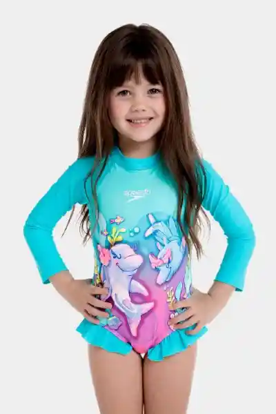 Nuestro Encantador Vestido de Baño Manga Larga Reef Explorer Bebé Femenino es Una Hermosa Prenda Para Las Más Pequeñas. Diseñado Con Los Más Altos Estándares Calidad Para Brindar Comodidad y Protección en el Agua y Bajo el Sol. Un Traje de Baño Completo Para Niñas de 2 a 6 Años en Color Azul Con Diseño Animado de Delfines en Corales y Logo Speedo Blanco en la Parte Delantera. Un Vestido de Baño Fabricado Con Tela de Protección Solar de Factor Upf 50 Que Bloquea el 98% de Los Rayos Del Sol Brindando Protección uv 50 (De Los Rayos Uvb y Uva). Nuestro Vestido de Baño Manga Larga Fantasy Forest Está Pensado Para Proteger la Delicada Piel de tu Niña Contra Los Rayos Solares Mientras se Divierte en el Agua. Haz Que Cada Día en la Piscina y la Playa Sea Seguro y Divertido Con Speedo! Detalles: Vestido de Baño Manga Larga. Prenda de Protección Solar. Forro Interno. Cierre Trasero Que lo Hace Fácil de Poner y Quitar. Cuello Redondo.