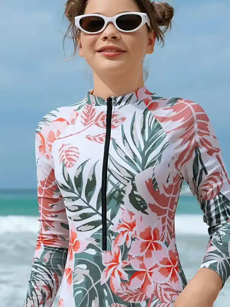 Nueva Traje de Baño de Surf para Niñas con Estampados Modernos, Perfecto para Vacaciones, Actividades al Aire Libre y Agua Terma. Vestido de baño adecuado para una joven de una altura de 1,65 - 1,70 cm / 90 cm de pecho aproximadamente. Detalles del producto. Material: Poliéster Composición: 85% Poliéster, 15% Elastano Detalles: Cremallera Estampado: Floral Tela: Elasticidad alta Instrucciones de cuidado: Lavable a máquina, no en seco. Estilo: Casual Tipo: Una pieza Grupo de edad aplicable: 3 años o mayores Tipo de corte: Ajustado Método de tejido: Tela tejida Público objetivo: Niña
