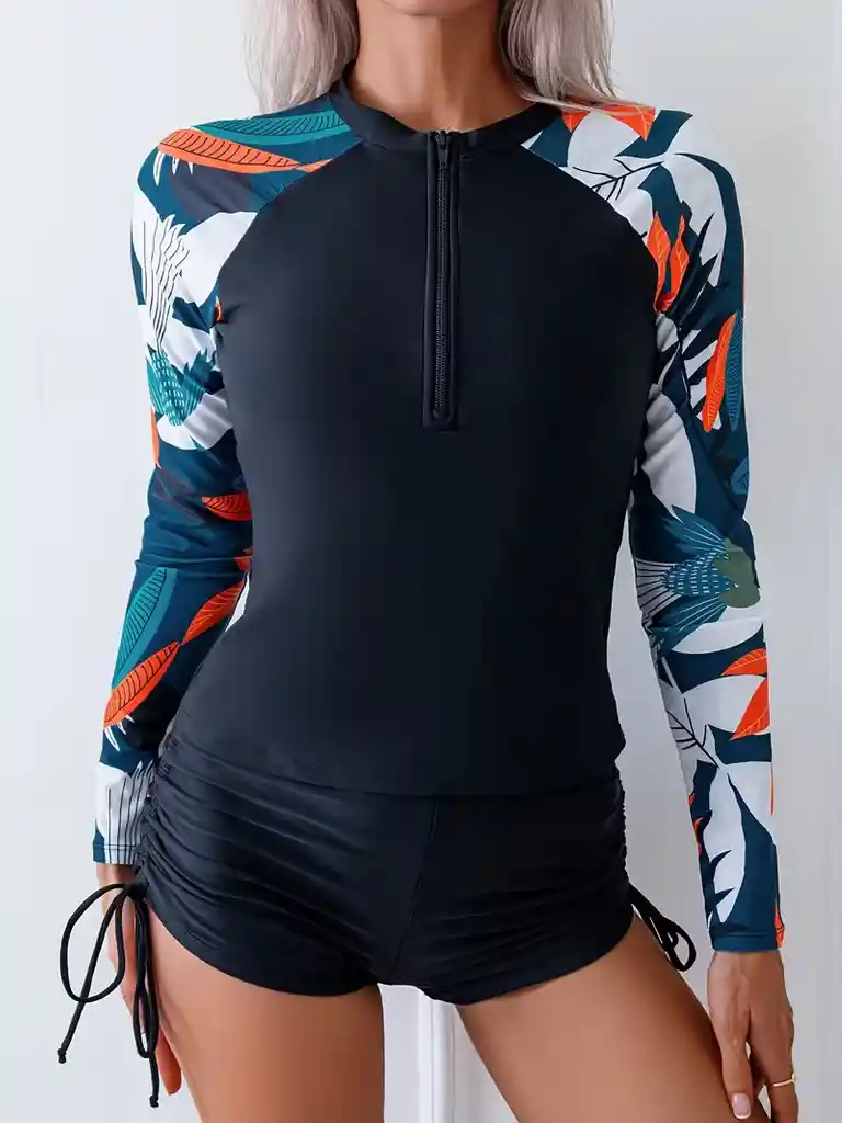 Nuevo Traje de Baño Tankini para Mujer, Conjunto de Traje de Baño de Manga Larga con Estampado Sexy y Cremallera Separada. Detalles del producto. Cinturón: No Largo de manga: Manga larga Tipo de prenda inferior: Bragas con amarre Detalles: Ninguno Estampado: Impresión aleatoria Escarpado: No Tela: Elasticidad alta Estilo de cuello: Cuello redondo Instrucciones de cuidado: Lavar a mano, no lavar en seco ocasión: Natación Otro material: Nylon Material: Poliéster Tipo: Tankinis Tipo de impresión: Estampado aleatorio Composición: 82% Poliéster, 18% Elastano Método de tejido: Tela tejida Textura de la tela 1 Componente: 82% Poliéster, 18% Elastano Textura de la tela 2 Componentes: 82% Poliéster, 18% Elastano