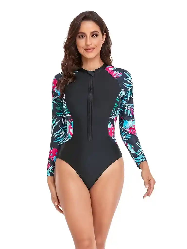 Traje de Baño de Una Pieza Estirable con Estampado de Hojas, Manga Larga con Cremallera, Corte Alto, Protección Solar para Deportes Acuáticos y Surf, Ropa de Baño y Vestimenta para Mujer. Detalles del producto. Detalles: Cremallera Estampado: Impresión aleatoria Escarpado: No Tela: Elasticidad alta Estilo de cuello: Cuello redondo Tipo: Una pieza Instrucciones de cuidado: Lavar a mano, no lavar en seco Estilo: Deportivo Material: Poliéster Tipo de impresión: Estampado aleatorio Composición: 82% Poliéster, 18% Elastano Método de tejido: Tela tejida