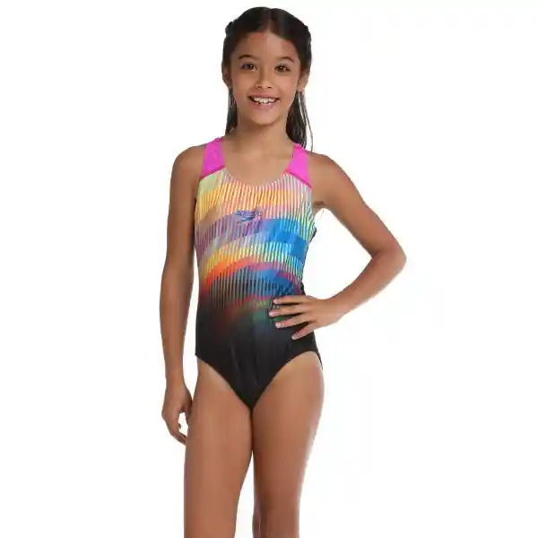 Nuestro Encantador Vestido de Baño Splashback Radial Faded Fun Junior Femenino Está Diseñado Con Los Más Altos Estándares Calidad Para Brindar Comodidad y Estilo. Un Traje de Baño de Una Pieza Para Niñas de 6 a 14 Años Con un Hermoso Estampado de Espiral Multicolor en Tonos Vivos Con Estilo Degradado al Negro y Logo Speedo Azul en la Parte Delantera y Diseño Negro Sólido en la Espalda. Un Vestido de Baño Con Cargaderas Fucsia Para Que Luzca Hermosa Mientras se Divierte en el Agua Con Comodidad y Libertad. Haz Que Cada Día en la Piscina y la Playa Sea Seguro y Divertido Con Speedo!Detalles de la Prenda- Vestido de Baño Splashback.- Forro Interno Delantero.- Fácil de Poner y Quitar.