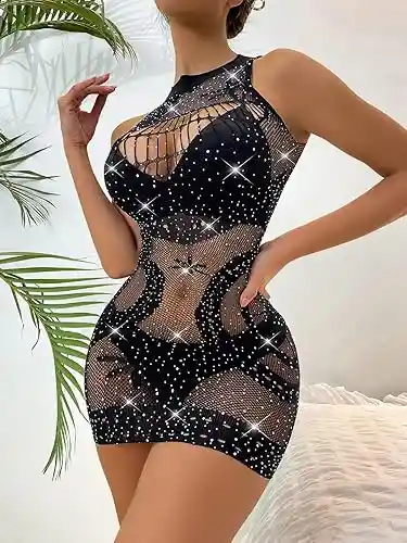 Se podría nombrar llamativo, pero no sería suficiente, este sensual Vestido Malla Libelula les dará un giro a las noches de placer. Su diseño en malla con brillantes deja que las partes más prominentes del cuerpo se destaquen sin ir de más y lo mejor de todo, es que no tiene costuras, lo que lo hace ideal para que las tallas desde la S hasta la L se vean grandiosas. Material: 88% Nailon, 12% Elastómero Presentación: Vestido de Malla con brillantes (No incluye Panty ni Brasier) Medidas: Talla única Color: Negro - Lenceria Femenina Ref- 60241Z Cuidados: Lavar con agua fría, a mano, por separado o en el proceso de prendas delicadas, no usar desinfectantes, ni plancha, y secar a la sombra. Confidencialidad: Tus pedidos se envían en una caja o sobre totalmente sellado opaco sin ningún tipo de marcas externas. Para nosotros es muy importante tu privacidad.