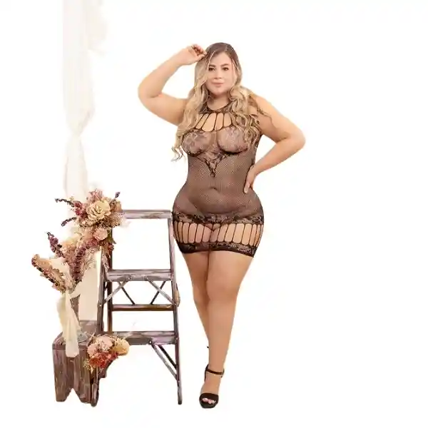 Vestido de Malla Plus Size Aurora Este vestido sensual plus size está diseñado para resaltar las curvas con elegancia y actitud. Su confección en malla elástica con transparencias y aberturas decorativas crea un look atrevido que realza la silueta de forma favorecedora. El material suave y flexible se adapta cómodamente al cuerpo, ofreciendo un ajuste seguro y confortable. Ideal para momentos íntimos, noches especiales o para quienes desean lucir seguras, sensuales y auténticas. Características: Material: 93,4% polyamide + 6,6% Elastane Talla: Única/plus Color: Negro Incluye: Vestido Lavado y cuidado: Lavar a mano con agua fría y un detergente suave. Evita el uso de blanqueadores, el secado en máquina y el retorcido, ya que pueden dañar las fibras delicadas. Sécala al aire libre, preferiblemente a la sombra, y guárdala en un lugar limpio y seco para conservar su forma y suavidad. Confidencialidad: Tus pedidos se envían en una caja o sobre totalmente sellado y opaco sin ningún tipo de marcas. Para nosotros es muy importante tu privacidad. Despacho a todo Colombia