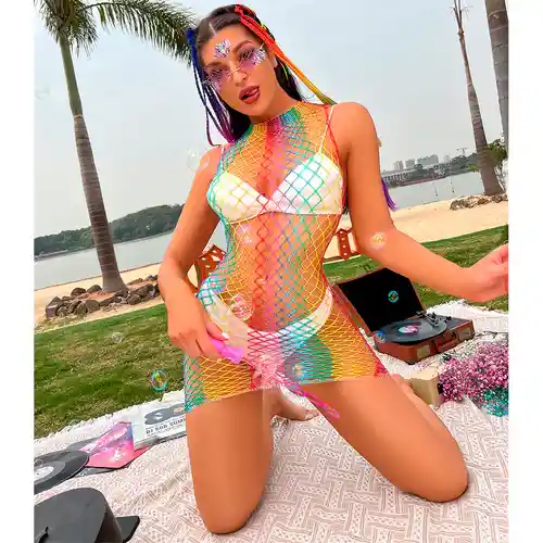 Vestido en malla, combínalo con tus outfits favoritos, ideal para los días de sol y festivales.