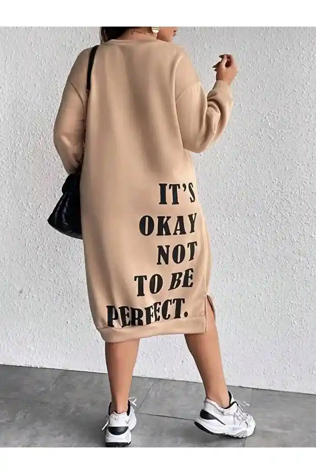 Vestido de Sudadera Casual de Manga Larga con Estampado de Letras, Talla Grande, Corte Recto y Holgado