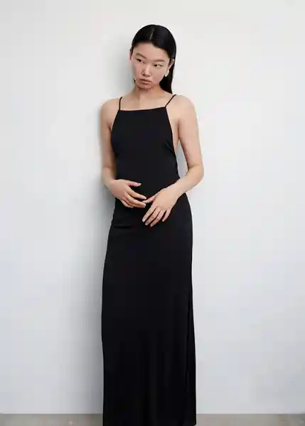 Abertura Lateral Cuello Recto Diseño Entallado Diseño Largo Disponible Plus Espalda Con Escote Lazo Ajustable en la Espalda Sin Cierre Tejido Fluido Tirantes Finos - 47097134_99.